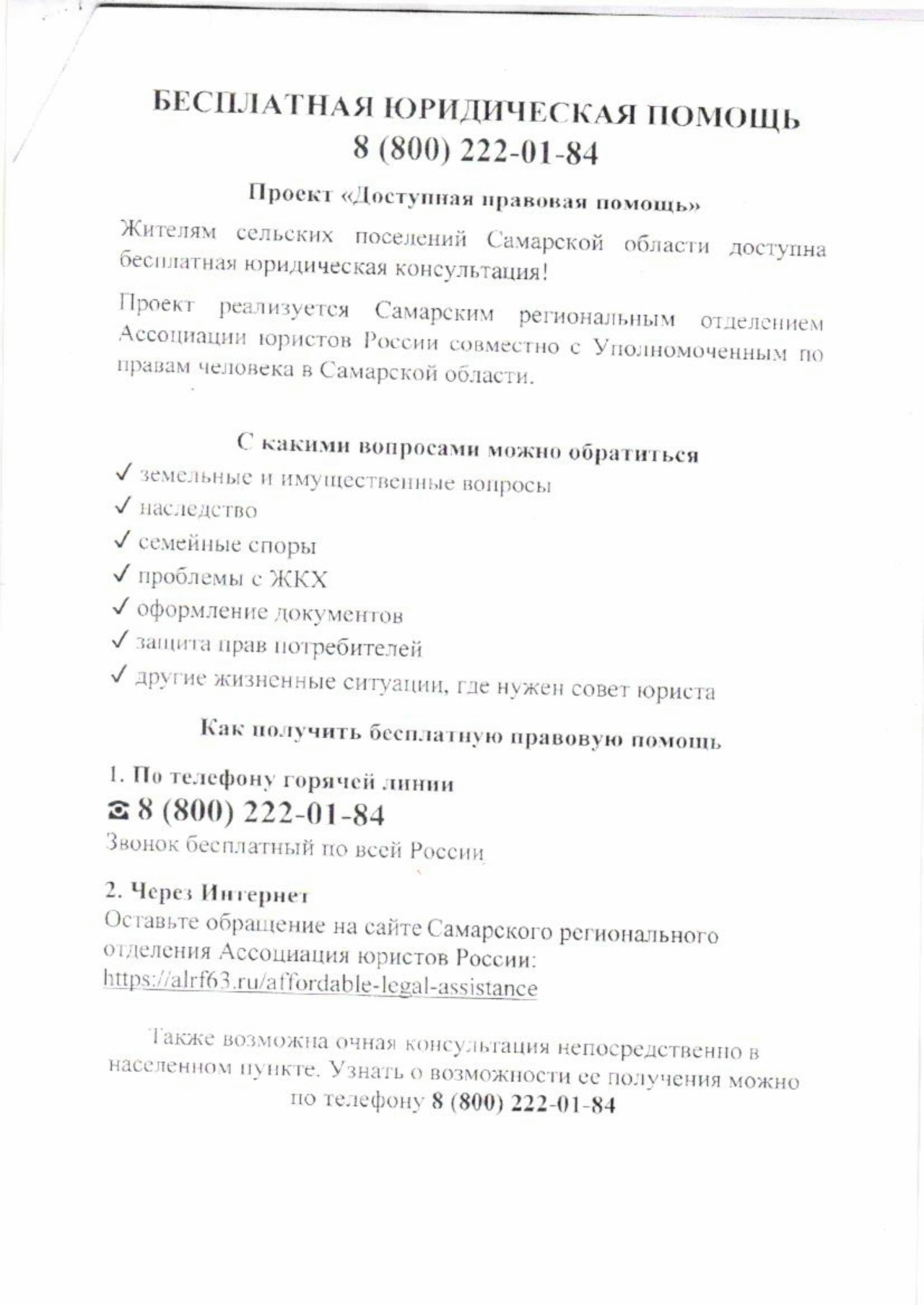 В феврале 2025 года стартовал совместный проект Самарского регионального отделения Ассоциации юристов России и Уполномоченного по правам человека в Самарской области «Доступная правовая помощь», ставший победителем конкурса Фонда президентских грантов