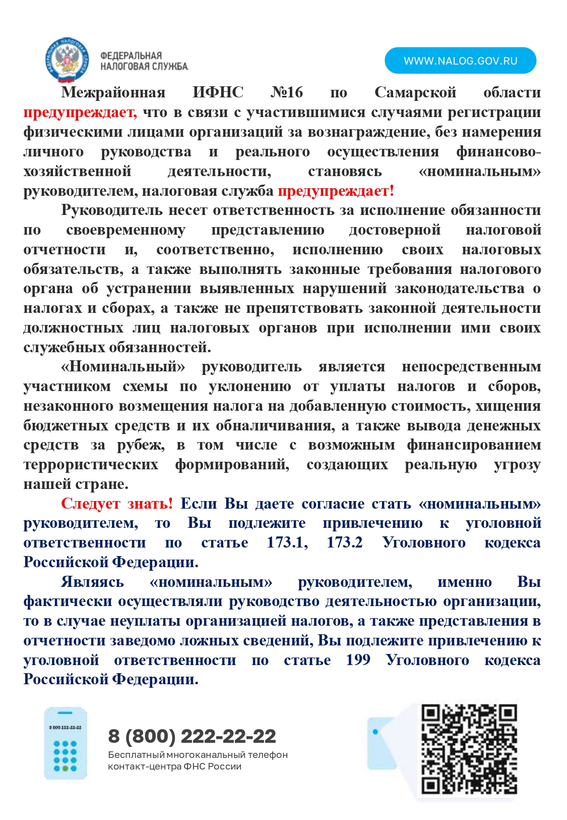Межрайонная ИФНС России №16 по Самарской области информирует